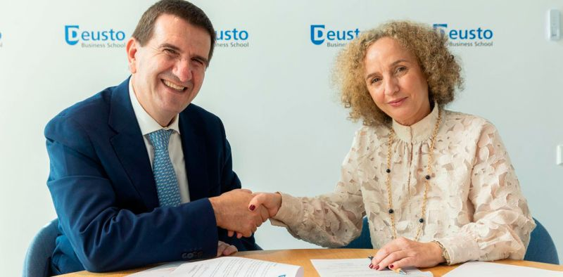 La presidenta de la Fundación Vizcaína Aguirre y el Rector de la Universidad de Deusto han firmado un nuevo acuerdo de colaboración que permitirá continuar ofreciendo becas al alumnado e impulsando la proyección internacional de la Deusto Business School (DBS)